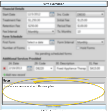 - Click the Form Submission bar to view and change the financial data, additional services provided, and notes regarding this insurance coverage.