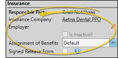 Signed Release Form - Enable this option if the responsible party has signed a statement releasing dental information for the purpose of adjudicating insurance claims. (This field syncs with the Signed Release form field on the Responsible Party page of the patient folder.)