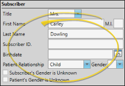 Gender - Indicate the subscriber's gender, not the patient's gender, in this field. You may also enable the unknown gender fields if necessary.
