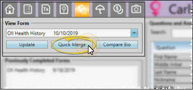 Patients often accumulate multiple online forms as they update their health histories throughout treatment. You can view the results of each form, search for data in the selected form, and view responses according to the category assigned to them.