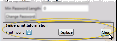 - Click Clear to erase the fingerprint file for an operator. This prevents that operator from using your fingerprint sensors to log into your system.