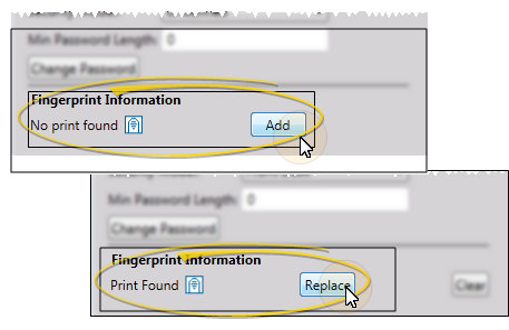 If no previous fingerprint file is found for this operator, click Add; if a fingerprint is already stored, click Replace.