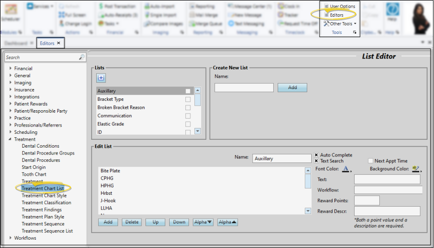 Treatment Chart and Plan List Report