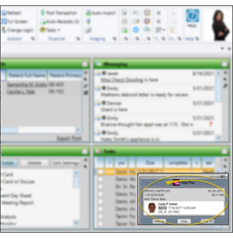 This report gets its data from the Edge Pop app. Use Edge Pop to see the patients and responsible parties that are calling into your office. When a pop up notification appears on your screen, it takes just a few simple clicks to open a patient or responsible party folder, or to create a new patient or responsible party record. See "Edge Pop" for details.