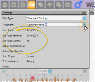 For the data on this report to be accurate, you must consistently record the patient's expected and actual removal dates for each treatment phase on the Findings page of the patient folder. See "Patient Treatment Findings" for details.