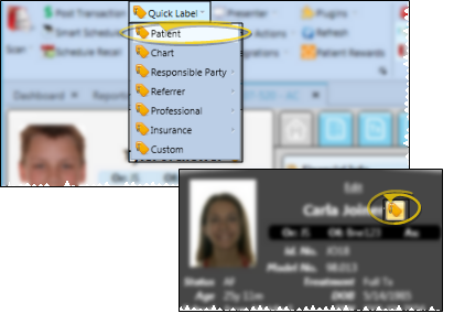 If the patient is also a referral source for another patient, you can print a referrer quick label for them from the referred patient's ribbon bar. See "Referrer Labels" for details.