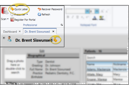 Print a Quick Label from the Patient Ribbon Bar