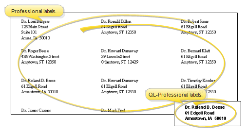 Run a Professional mailing label or quick label to generate a label for one or more people listed in your Professionals editor. Originally, your Edge Cloud mailing labels and quick labels are formatted to print the recipient's name and address. However, you can use the Quick Label editor to change the label contents. The mailing labels are formatted to print on standard 8.5" x 11" mailing label paper, 3 labels across and 10 labels down, and the quick labels are formatted to print on single-column label paper with an approved printer.