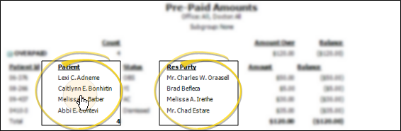 While viewing some Edge Cloud reports, you can click a patient name or responsible party name to open that record. Not all Edge Cloud reports support this feature. If your cursor changes to look like a hand, the feature is available.
