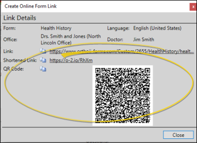 You can then click the icon beside the Link, Shortened Link, or QR code to copy that type of link to your clipboard. The copied link can then be sent to a patient via email, or added to your website. When the patient clicks the link and submits the form, their information will be associated with the doctor / office and metadata included in the link details. So, if you use filters when you work with your online forms, you will see only those associated with the doctors, offices, and other data that you choose.