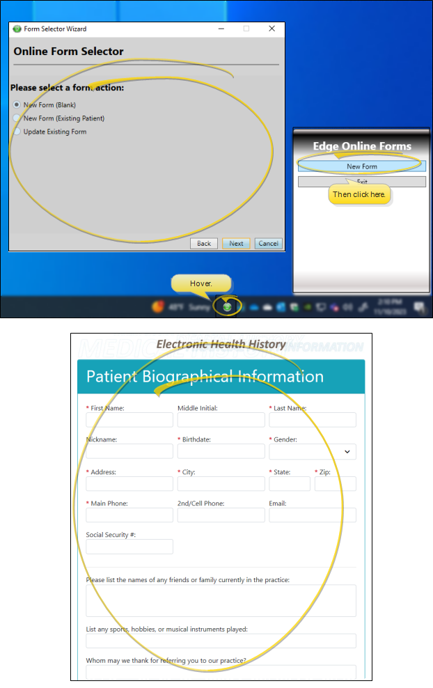 Installing the Online Forms Viewer application is optional. However, if you do install it, you can use the Viewer to launch online forms without having to open your entire Edge Cloud system. For example, you might install the Viewer on a laptop or other workstation in your reception area to provide a convenient place for patients to fill out new forms and update their health histories.