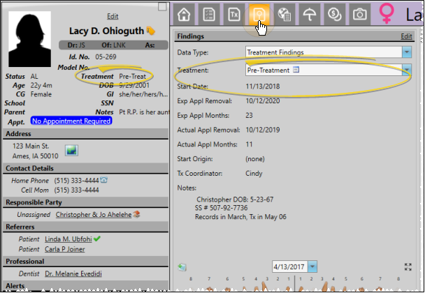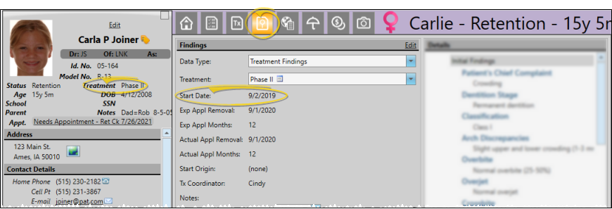 Start Date - The Start Date of the patient's current treatment phase. This is found on the Findings page of the patient folder, and correlates with the contract start date. The start dates of other treatment phases are ignored.
