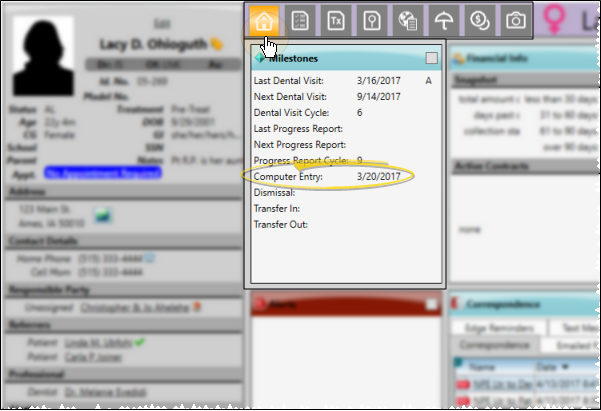 Entry Date - The date the patient was first entered into Edge Cloud. This is found on the Milestones panel of the patient folder Home page. This date cannot be changed by you.