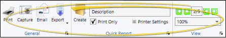Use the toolbar at the top of the report window to zoom the display, view additional pages, print the report, and more. Be aware that not all output choices are available for all reports and forms. See "Report Output Options" for details.