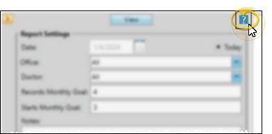 Select the options to use for choosing records and generating this report. Choose carefully, as your selections will affect which data is included in the report. (If the report settings panel is not visible, click the Show/Hide icon in the upper left corner of the Reporting window.) The options will be different, depending on which report you chose to run. The last settings used to generate the report are the defaults.