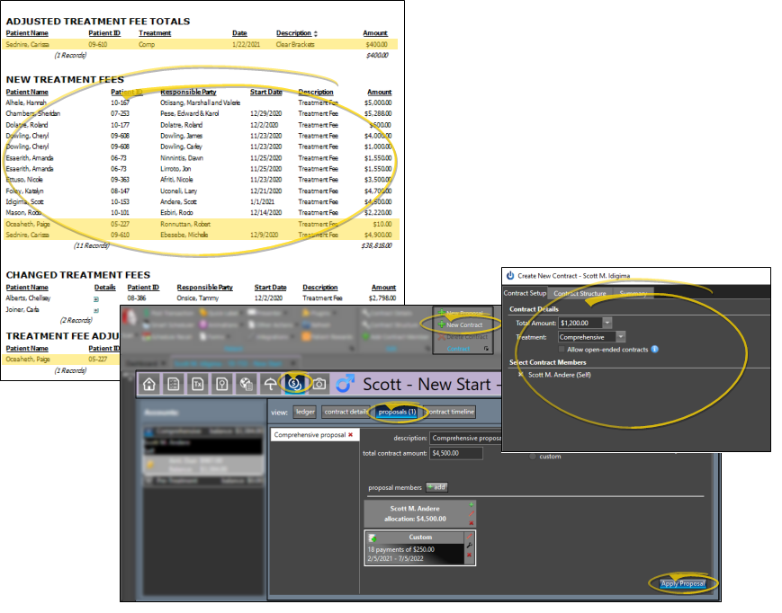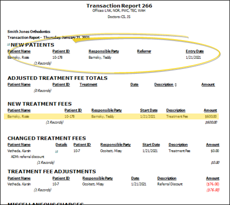 If a contract was created for the patient as well, that information will be included in the New Treatment Fees section of the report.