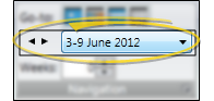 • From the Navigation section of the Scheduler ribbon bar, choose a date you recently viewed from a list, or use the arrow keys beside the recent date field to toggle through the dates.