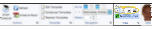 Add, Remove or Replace a Template - You can use the Scheduler ribbon bar to remove and replace the scheduling template. While in Month View mode, right click a date (today or in the future) and choose to add, remove, or replace the scheduling template. You can add as many templates as needed to each date. For example, a practice with multiple office location might assign a template for each office on each date. You can quickly apply the same template to multiple dates by holding down the Shift or Ctrl key while you choose the dates, then right-clicking and choosing Add a Template. When you remove a template from today or a date in the future, any appointments already scheduled to that template are moved to your Scheduler bar, with the date as the bar heading. Finally, when you replace a template for today or a date in the future, any appointments that do not fit into the new template are moved to a Scheduler bar for rescheduling. See "View Monthly Schedule" for details.