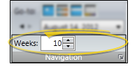 • From the Navigation section of the Scheduler ribbon bar, enter a number in the Weeks field to jump ahead that far into your schedule.
