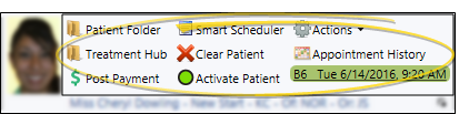 • You can "activate" a patient in your Scheduler, then use the Active Patient ribbon bar section to perform several tasks for that patient. The active patient is not necessarily the same as the patient assigned to the appointment you currently have selected in the Scheduling grid. Additional patient tasks are available by right-clicking an appointment, as described below.