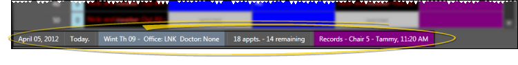 The Selected Appointment section of your Scheduler ribbon bar can optionally be hidden by your Scheduler User Options settings. (See "Scheduler User Options" for details.)
