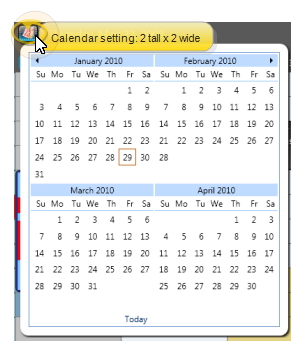 • Click the Calendar icon in the top-left of your scheduler window to use a calendar to go to a specific date or series of dates in your Scheduler. You define the number of months shown with the calendar settings in your General Grid Options.