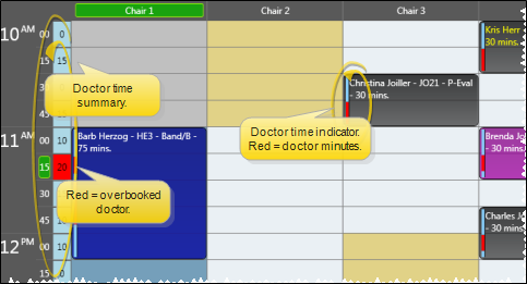 Doctor Time on Appointment - Each patient appointment can include a colored bar that indicates exactly which minutes throughout the time slot requires the orthodontist.