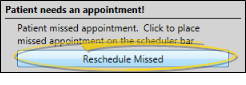 - When you process an appointment as Missed for a patient whose status requires an appointment, and who has other appointments scheduled, you can click Reschedule Missed to place the patient, along with the existing details of the missed appointment, on the Pending section of your Needs Appointment list. Or, click the X at the top of the rescheduling box to ignore the message. Whichever action you choose, the original missed appointment will be recorded in the patient's Appointment History.