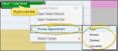 Right-Click A Scheduled Appointment to Process It