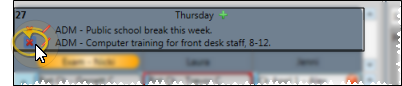 View Notes in Day or Week Mode - While viewing your Scheduler in Day mode or Week mode, the notes appear under the day of the week header. If the notes are collapsed, you can hover over the Note icon to view them.