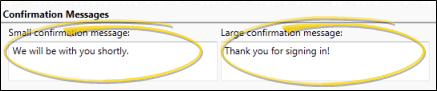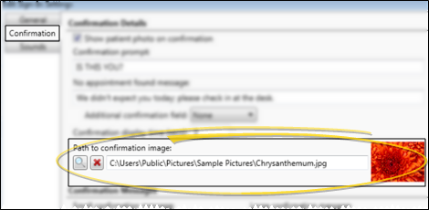Use the Confirmation tab of your Sign-In Settings editor to set up the messages and optional image your patients see as they complete the patient sign-in process. These settings are workstation-specific: Other workstations in your Edge Cloud system may have different settings.