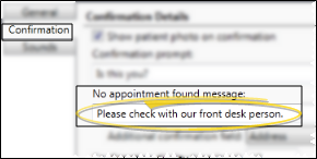 • Type a message to display when a patient that does not have an appointment scheduled for today attempts to sign in. We suggest Check with our front desk person please or something similar.