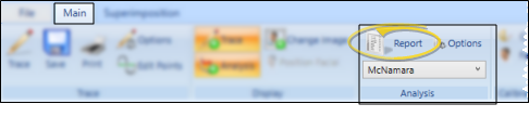 - Click the Report icon on the Analysis section of the Main ribbon bar to open the report.