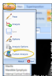 • Select the ![](/img/SmartCeph/icon analysis options.png)Custom Analysis icon from the SmartCeph File ribbon bar.