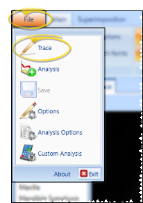 • Before you begin tracing, confirm the analysis you want to use is selected in the Analysis section of the Main ribbon bar, to assure that you will be tracing all necessary structures. (If you have custom analysis files that are not listed, be sure the Path to Custom Analysis field of your Analysis Options is correct. See "Analysis Options" for details.)
