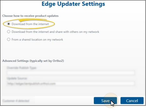 On your computer, open the Ortho2 > Edge > Edge Update Settings application.