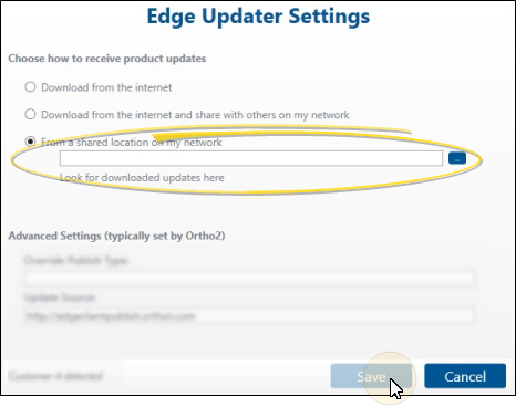 If you have set up a computer to be your update server with the "Download From the Internet and Share" option, you can use this option to pull updates from that computer to this computer. Be sure to enter the location where the updates are stored exactly as it is set up on your update server computer. With this option, whenever you log into Edge Cloud, your system will check the downloaded update files, and prompt you to update this computer as needed.