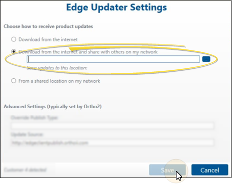If the "Download from the Internet" option does not work on one or more of your Edge Cloud computers, you can use this option to set up one computer to act as an internal update server. Be sure the "Save Updates Here" location you enter is accessible to all of your Edge Cloud computers. With this setting, whenever you log into Edge Cloud on this computer, your system will check for the most recent files and prompt you to download the files to your update location in addition to updating Edge Cloud on this computer as needed.