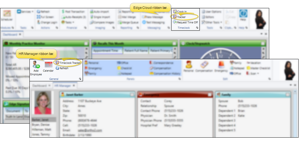 Select Timeclock Tracker from either the Timeclock section of the Edge Cloud Home ribbon bar, or the General section of the HR Manager ribbon bar.