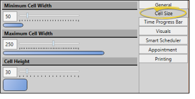 By default, Edge Cloud will stretch or squeeze the Scheduler cells to best fit your screen. However, you can use the Cell Size tab of your Scheduler user options to define cell minimum and maximum widths, as well as cell heights, to display things just the way you like them.