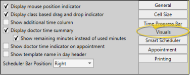 Use the Visuals options to set up many viewing choices that define how your scheduling window looks and behaves.