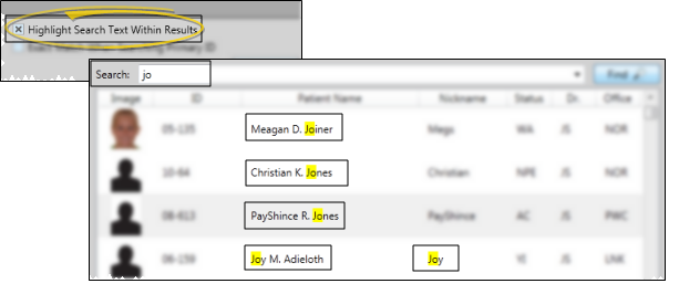 Enable this option to include a photo of the patient in the list of matching patient records. You may want to disable the option to speed up the search, unless it helps you correctly identify certain patients.