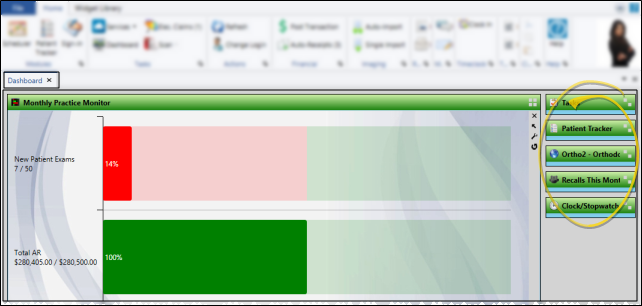 Single Expanded - With Single Expanded mode enabled, one widget panel is always expanded on your Dashboard, and the remaining active widgets are listed as buttons at the side of the screen. You then click or tap to choose the widget panel to expand. This mode is enabled automatically when you apply the Tablet layout.