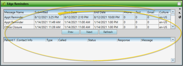 Use the Edge Reminders widget to review the status of Edge Reminders messages you have sent to your patients. See "Review Sent Messages" for details.