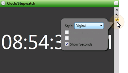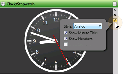 Click the Settings icon on the widget tool panel, and select the Analog style to view the time of day on an analog-style clock. You can then choose other display options.