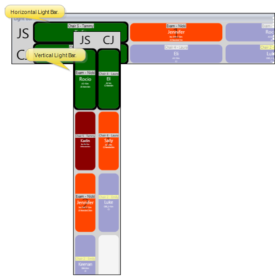 Select whether to show the seated patients horizontally (in a row), or vertically (in a column). Generally, when you view your light bar as an application widget, the horizontal orientation works best when your light bar is docked to the top of your Edge Cloud window, while the vertical orientation works best when your light bar is docked to one side of the window.