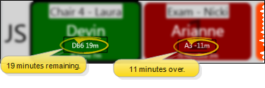 Or, disable this option if you want the light bar appointment timer to count down the number of minutes an appointment has left until it goes over the scheduled time. When an appointment goes over the scheduled amount of time, and the timer gets to 0, it begins to blink, and counts in negative numbers the amount of time the appointment has gone over.