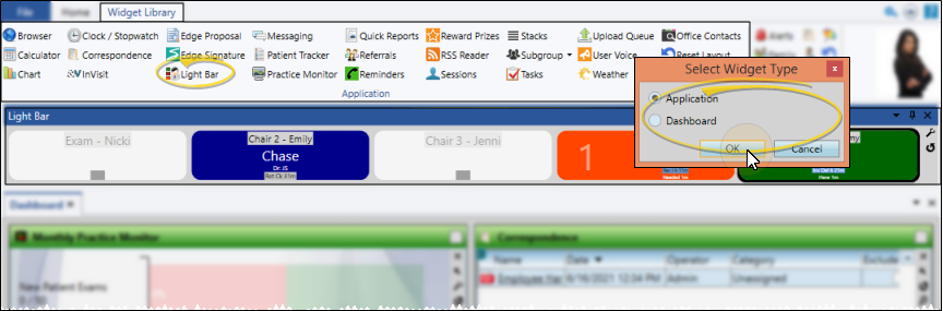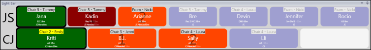 Use your Light Bar widget to monitor active involvement with patient appointments once they have been processed as "seated" in your Patient Tracker.