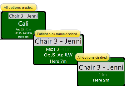 Enable each type of information ( Patient Nickname, Patient Last Name, Procedure, Doctor, and Assistant) that you want included in the light bar display.