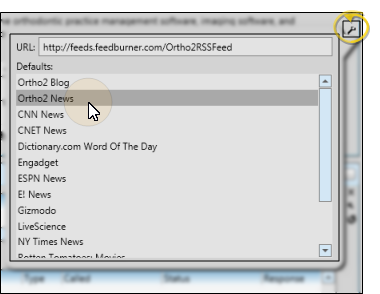 Click the Settings icon on the widget tool panel, then select a pre-defined RSS feed, or enter the web address of the feed you want to see in the URL field. Your setting remains in effect until you select a different feed.